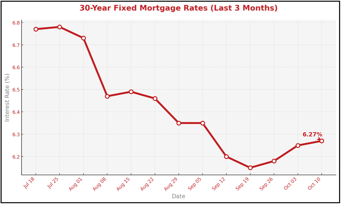Interest rates have risen slightly since reaching a two-year low last month. The average 30-year fixed-rate mortgage currently sits at 6.27%, while today’s 15-year fixed mortgage rate is 5.75%, and the jumbo 30-year fixed rate is 6.45%. Rates are typically two points higher on second-home and investment-home purchases.