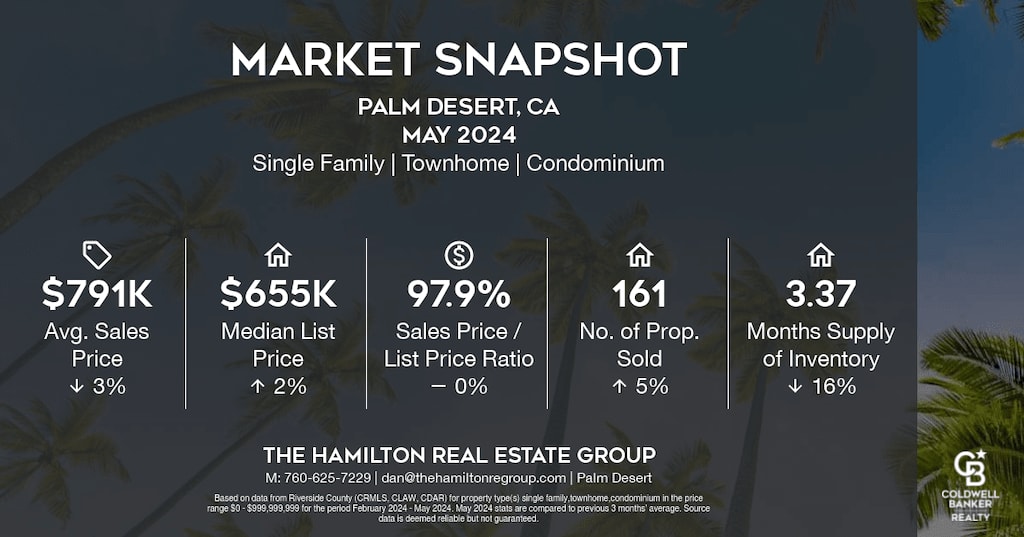 Welcome to our June 2024 Coachella Valley Real Estate Market Update! In this month’s overview, we delve into the latest market trends, providing essential insights on the number of homes sold, inventory levels, average sale prices, and the average days on market. Whether you're a buyer looking to make a wise investment or a seller aiming to maximize your returns, this comprehensive update offers valuable information to help you navigate the vibrant Coachella Valley real estate landscape.