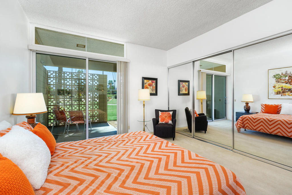 Experience the best of desert living in this classic mid-century modern home in Sandpiper Palm Desert, designed by renowned architect William Krisel and designated historic by the City of Palm Deserta"with the added benefit of a transferable Mills Act contract for significant property tax savings. Perfect for vacation homeowners or snowbirds, this furnished 3-bedroom, 3-bath home spans 2,069 sq. ft. and features high ceilings, clerestory windows, signature breeze block walls, and Fleetwood sliders that bring in abundant natural light. Each bedroom offers a private ensuite bath, and the east-facing patio provides mountain and pool views, while a private enclosed courtyard offers a peaceful retreat. The home blends timeless design and modern convenience with a private 1-car garage, newer HVAC system, updated kitchen appliances, and an indoor laundry closet. Ideally located in South Palm Desert near El Paseo's premier shopping and dining, and just minutes from scenic hiking and biking trails, this architectural gem invites you to relax, entertain, and enjoy the Palm Desert lifestyle year-rounda"and in season, you'll love socializing poolside with neighbors at the community's popular weekly gathering.